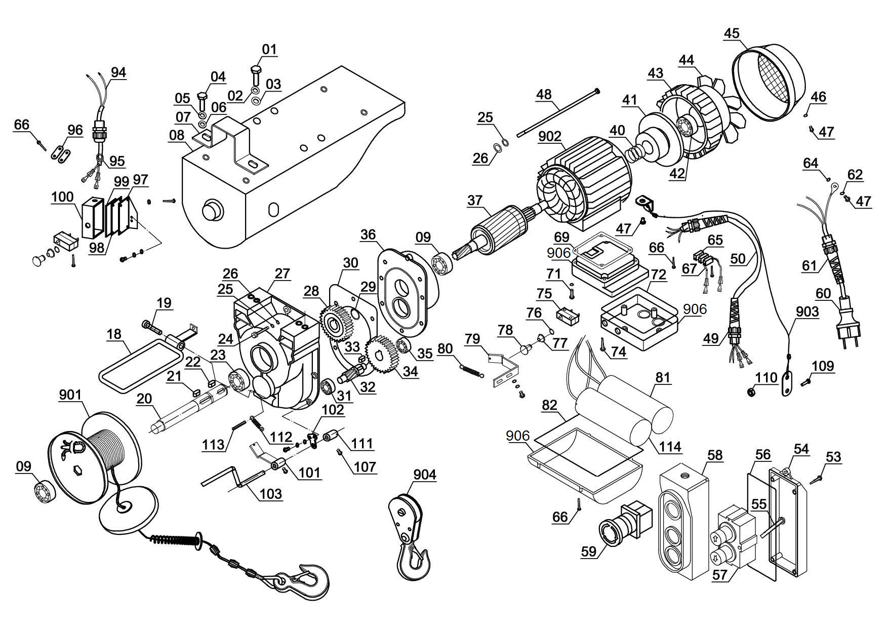 The Einhell TC-EH 1000 cable winch is a powerful assistant for lifting and transporting heavy loads in the hobby workshop or garage or when performing home construction work. For Einhell the priority here is safety and functionality: the cable winch has an extra-long 18 meter twist-free wire cable (diameter of 6 millimeters), so that the maximum lifting height without a guide roller is 18 meters and loads up to 500 kilograms can be moved - with a speed of eight meters per minute. With the help of the guide roller the load capacity increases to 999 kilograms, the lifting height is nine meters and the lifting speed is four meters per minute. The guide roller with load hook therefore doubles the maximum load weight. For extra safety while working there is an operator switch with emergency stop function and a safety catch on the load hook. In addition, an automatic brake secures the load in every position. The cable winch is also equipped with an automatic limit cut-out, which prevents the motor overheating at the same time. The motor with thermostatic switch contributes to a long service life and, with its power rating of 1,600 W, provides powerful and dynamic service. For easy mounting the equipment comes complete with two double clamps, so the user has no problem here either.